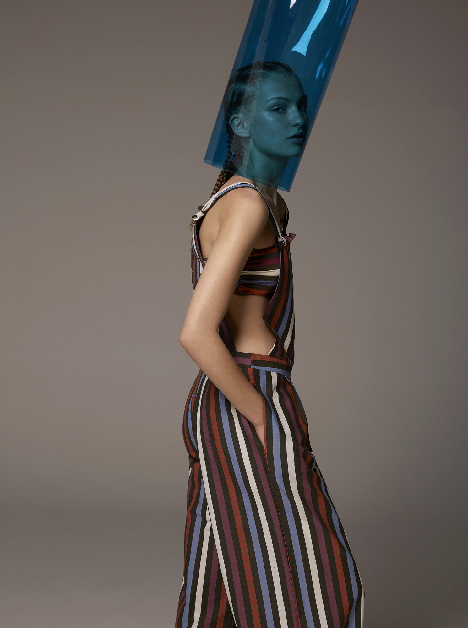 Cubistic and op art patterns in color combinations that are based on the principles of elegance, color one‐piece swimsuits and bikinis, but also beachwear that accompany them. Loose skirts, shorts, jumpsuits and robes, all without zipper – as not to limit body and mind – complete the collection alongside with spacious bags for the beach, as well as an early evening cocktail.
