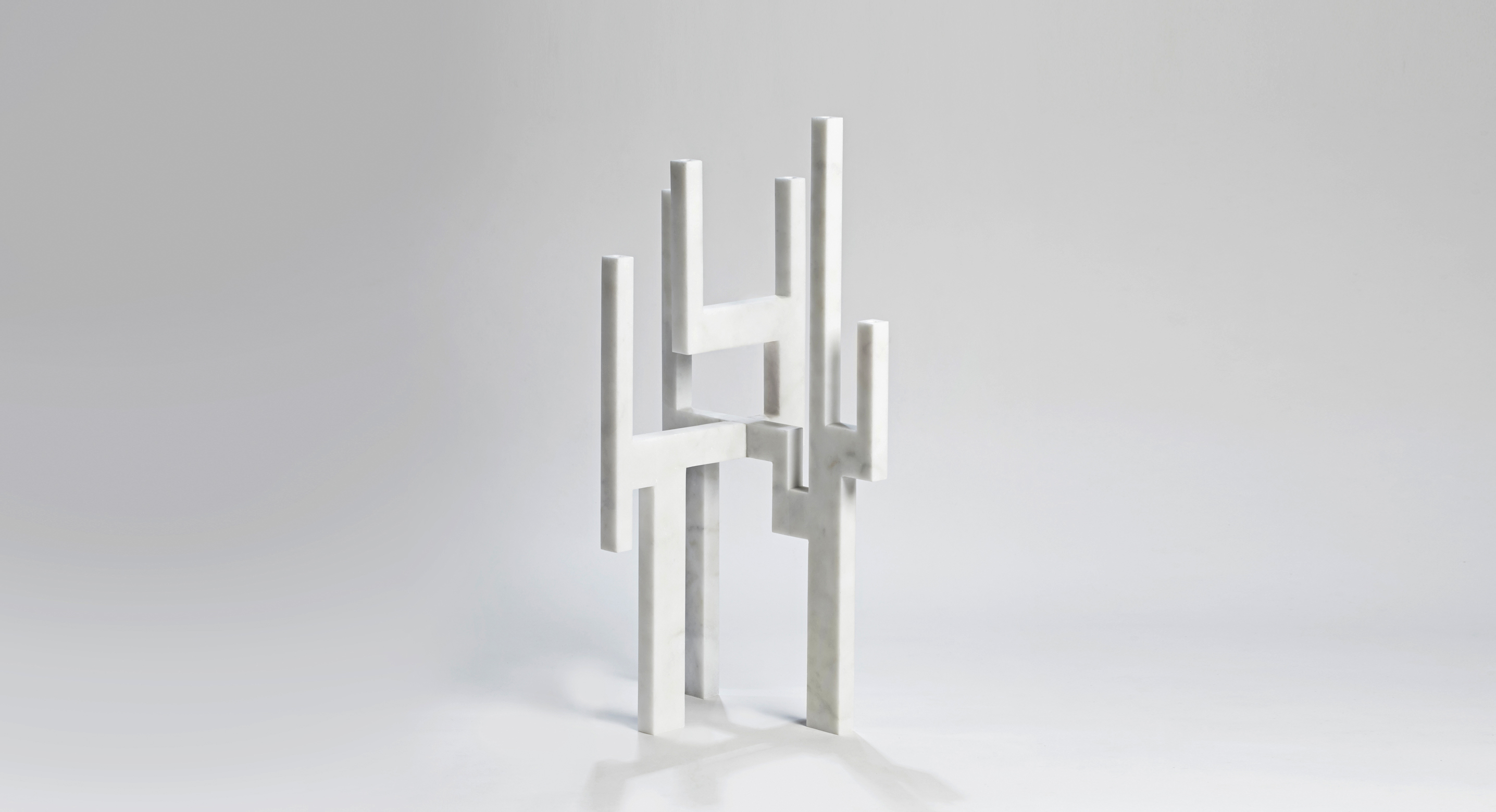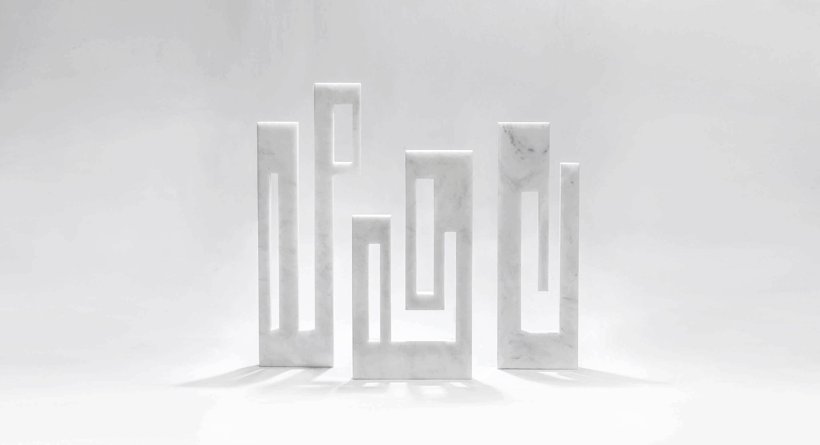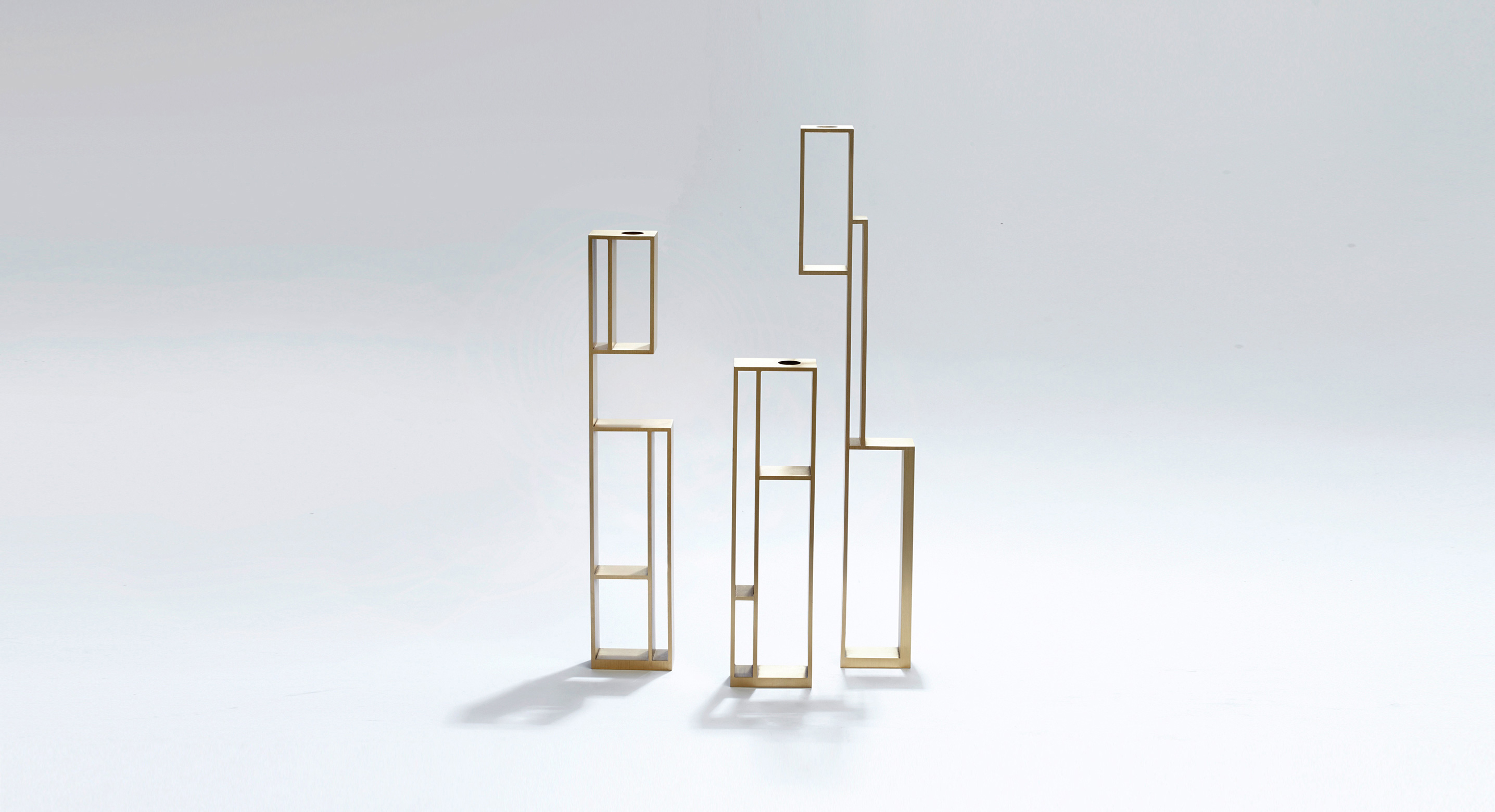 Two Is Company pays tribute to visible light, as captured by the human eye, with a wide range of white surfaces, almost reflective in their purity, while also incorporating their trademark bronze grids in impressive Spartan symmetries. Each object is a geometric homage to the photon concept, an elementary particle that burns bright with energy, a massless messenger that darkness has finally come to an end.