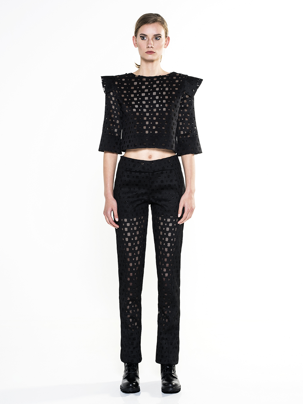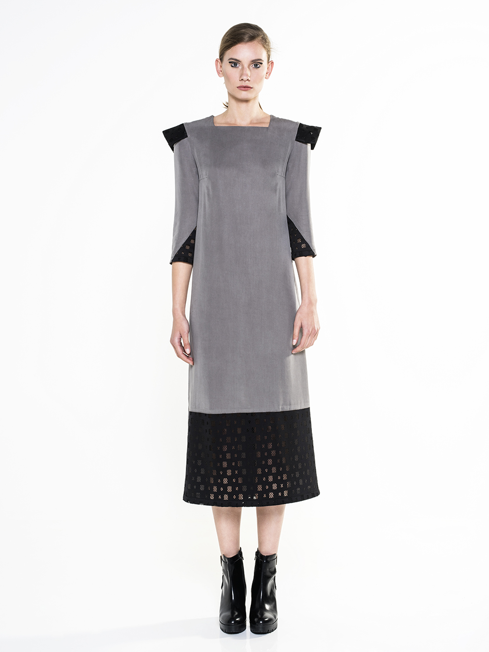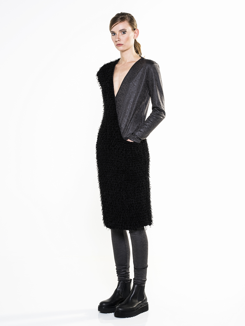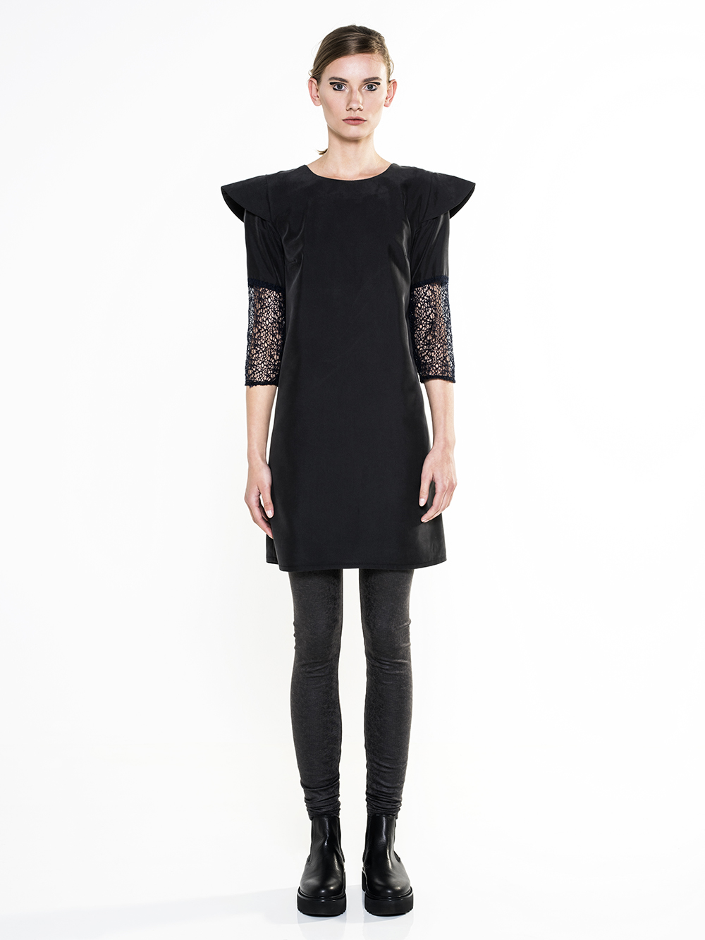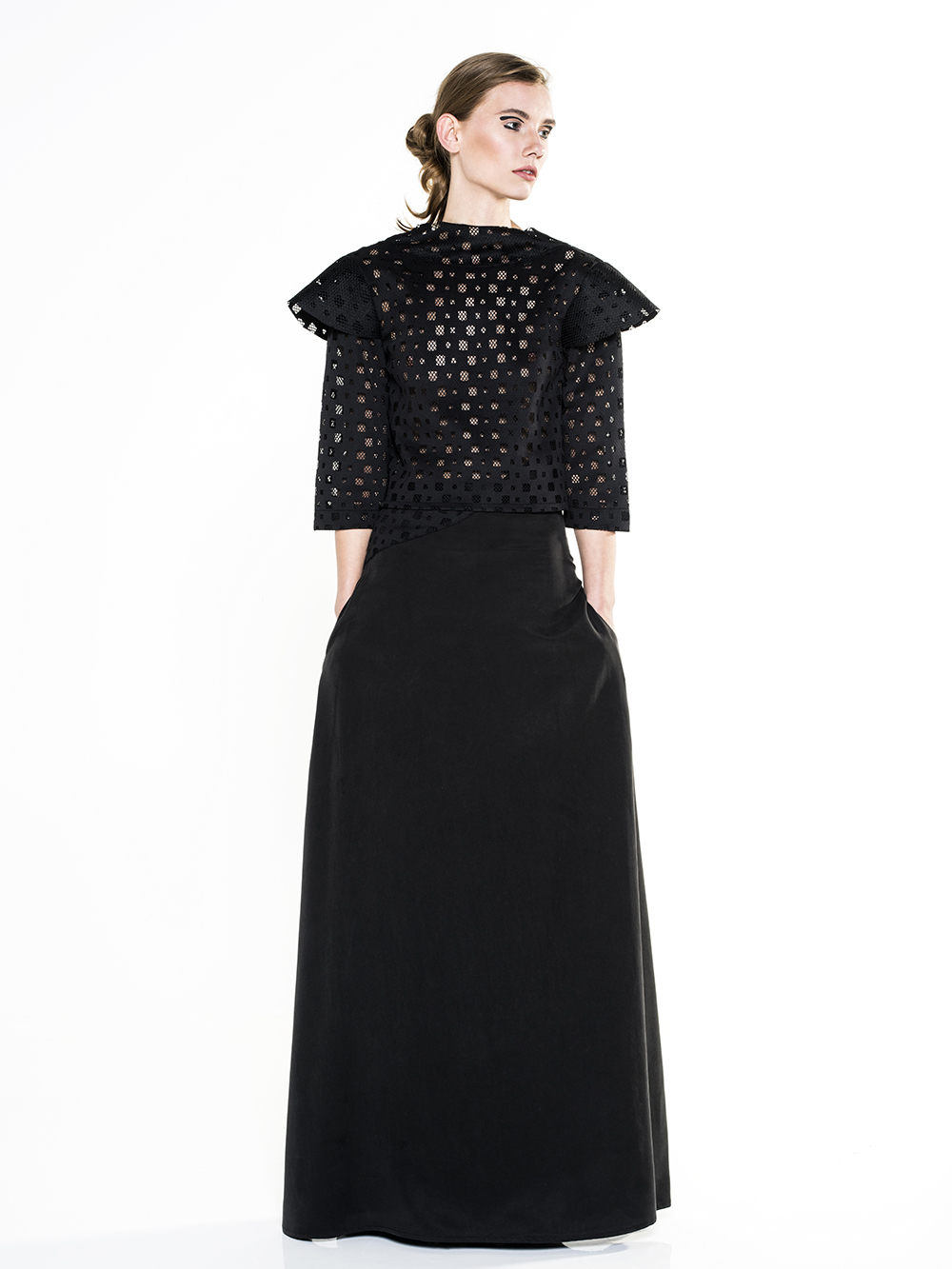 Athina Korda designing philosophy is strongly influenced by absolute geometric shapes. ‘Geometry can create strong emotions’. Her designs include sober lines and dark shades. Experimenting with various contrasting materials, molding them in ways as to give emphasis to garment elements, re- inventing body shapes. Creating garments that can be redefined according to its wearer while flattering the female figure is her basic design objective.