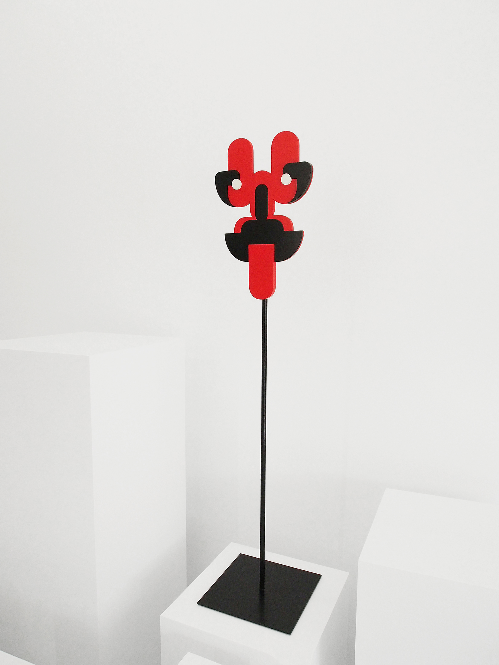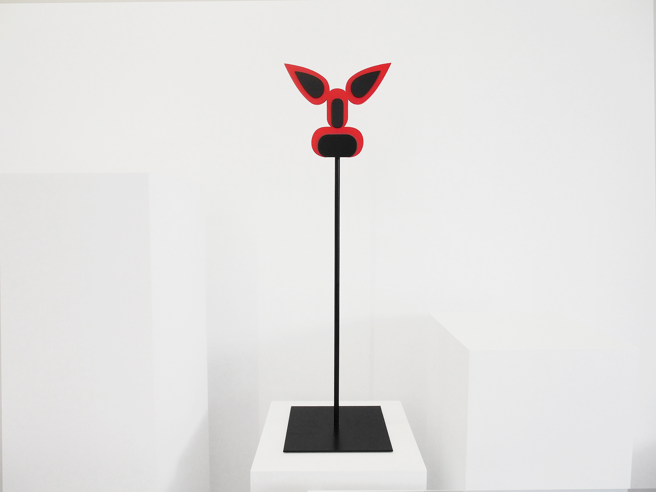 The Masked collection consists of nine wooden solely decorative art objects, in the form of the mask, leaning on a metal base. Although designed without specific references, we discovered through the outcome which elements of cultures had aesthetically influenced us to create a ‘new’ mask.