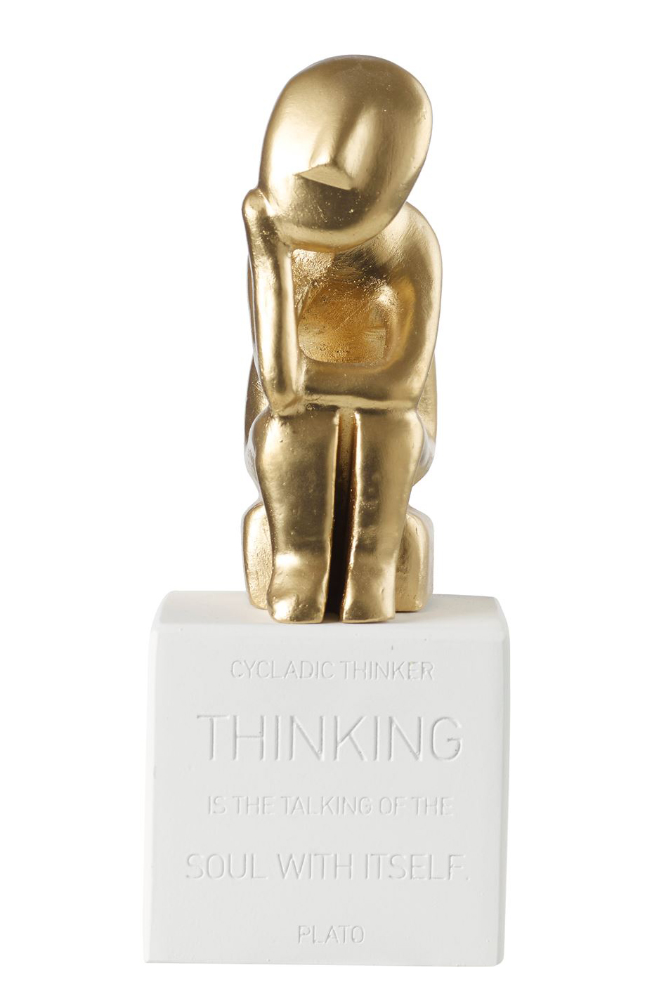 The handmade Cycladic Thinker statue is inspired by one of the most enigmatic and quietly powerful figures in the ancient world — a solitary contemplative form dating back to the Early Bronze Age Cycladic civilization, circa 2700–2300 BC. Found among the sun-drenched islands of the Aegean Sea, scattered across burial sites and sacred spaces of a civilization that left no written language behind, this rare archetypal figure speaks volumes through silence alone. Seated, head bowed, arm raised to forehead in a gesture of deep reflection, the thinker statue has endured across millennia as a universal symbol of introspection, inner wisdom, and the timeless human search for meaning.